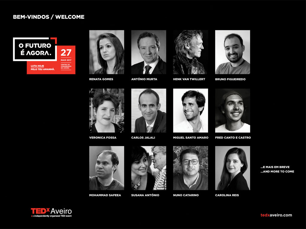 Oradores que vão partilhar, no dia 27 de maio, no Centro de Congresso de Aveiro, as suas histórias, ideias, experiências e sonhos sobre o futuro.