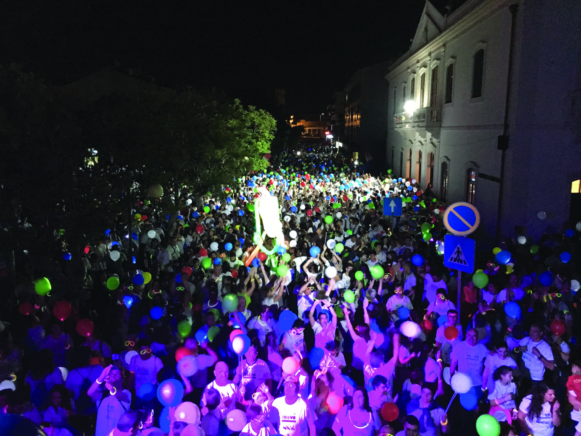 Com muitas surpresas durante o percurso, como fogo de artifício, bolas de sabão, confettis, dança e o acompanhamento de bicicletas e figuras gigantes iluminadas, a caminhada trouxe balões com leds e óculos e pulseiras de neon, a convidar a caminhar e a dançar em autêntico ambiente de festa e confraternização por uma causa solidária.