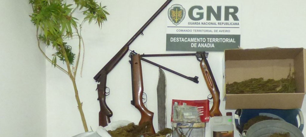 As autoridades apreenderam, na operação, 2.394 doses de folhas cannabis, uma planta de cannabis, uma espingarda caçadeira calibre 12, duas espingardas de ar comprimido, cinco caixas de chumbos para pressão de ar, oito munições de calibre 22, uma catana e um telemóvel.