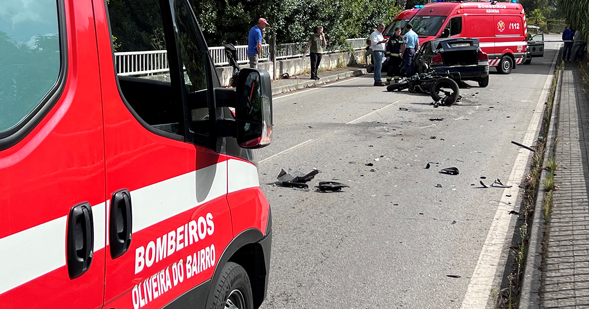 Uma colisão entre dois veículos ligeiros e uma moto provocou, esta terça-feira, três feridos, um deles com ferimentos graves, na localidade de Piedade, concelho de Águeda.