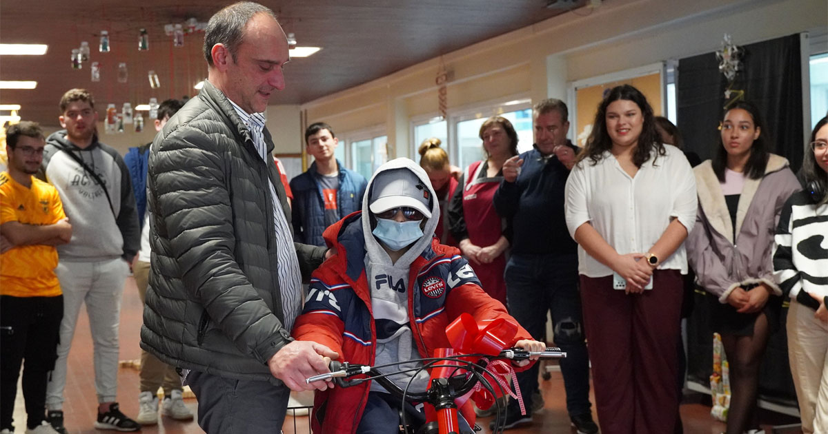 O jovem Mateus Barroco, aluno do 12.º ano do Agrupamento de Escolas de Oliveira do Bairro recebeu na terça-feira, dia 20 de dezembro, uma bicicleta elétrica adaptada, que o vai ajudar nas suas deslocações dentro da escola.