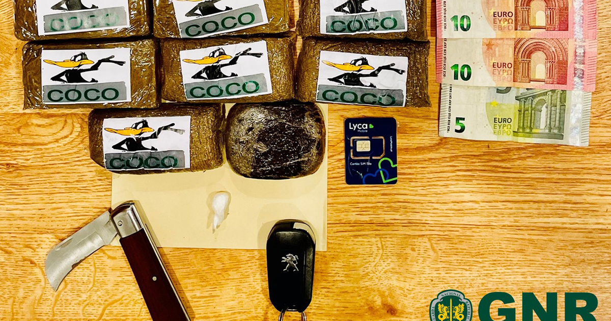 A GNR refere ainda que foram apreendidas mais de 2.200 doses de estupefaciente (2.211 doses de haxixe e três doses de cocaína), para além de um veículo.