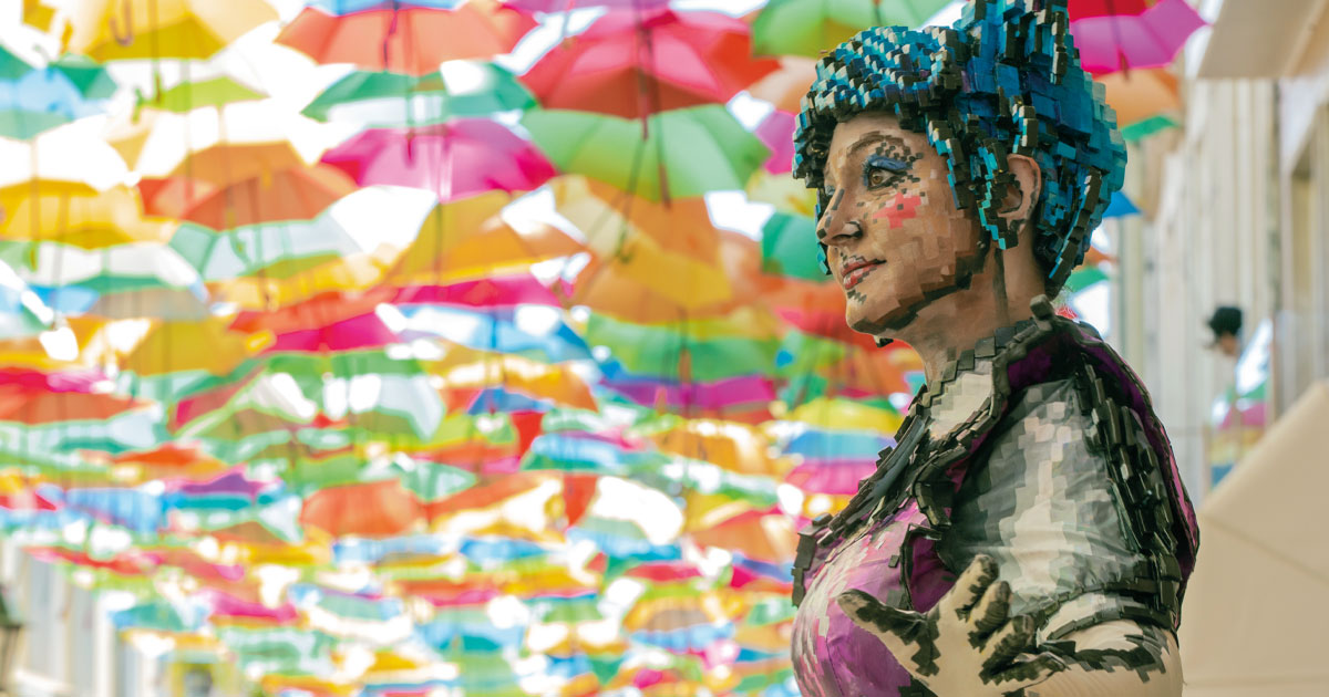 Das icónicas instalações de guarda-chuvas coloridos suspensos sobre as ruas da cidade, este festival, mais do que um evento cultural que volta a dar destaque a manifestações artísticas de vários quadrantes, envolvendo toda a comunidade local, oferece ainda aos visitantes um mês de concertos, animações de rua, artesanato, atividades desportivas e diversas tasquinhas a promover a boa gastronomia regional.