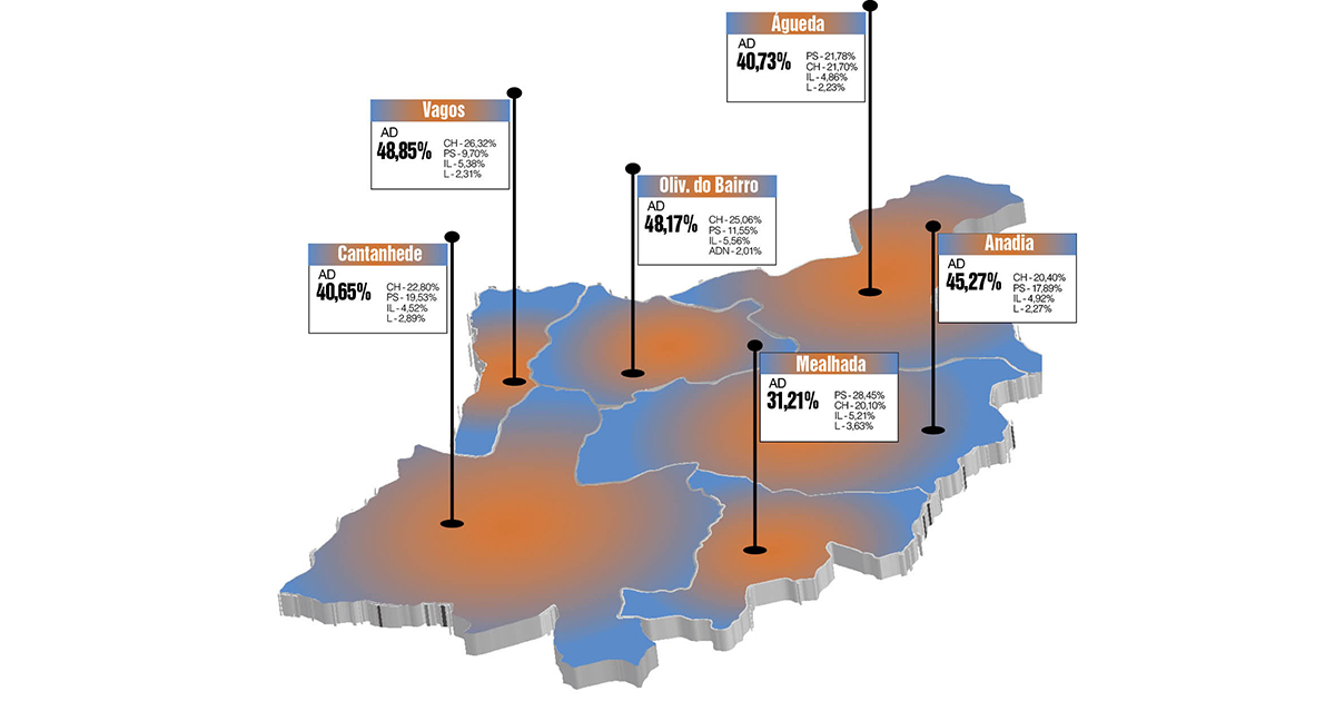 Em Águeda, a AD vence com maior vantagem para o PS do que nas legislativas anteriores, mas o registo mais curioso é mesmo a diferença de votos entre PS e CHEGA – 23 apenas.