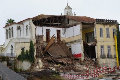 Depois da derrocada que fez ruir as traseiras do edifício, em setembro de 2022, os trabalhos tiveram de ser parcialmente suspensos e o calendário ajustado.