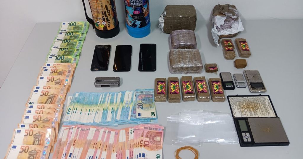 Foram apreendidas quase 7 mil doses de haxixe e 3850 euros em numerário.